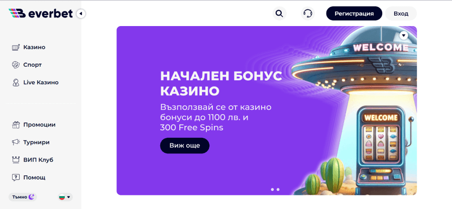 | ➡️ Начален казино бонус | До 275% бонус до 1100лв. + 300 безплатни завъртания. Минимален депозит: 30лв. Бонус код: 69. Условие за разиграване: 35х. |